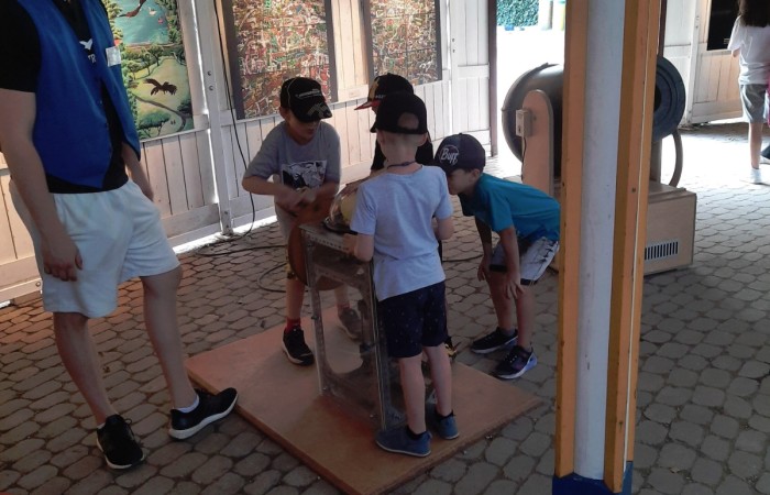 Im schiefen Haus und auf der Drehscheibe spürten wir unseren Gleichgewichts- und Orientierungssinn.