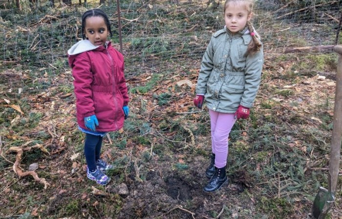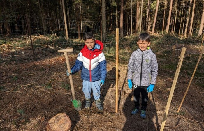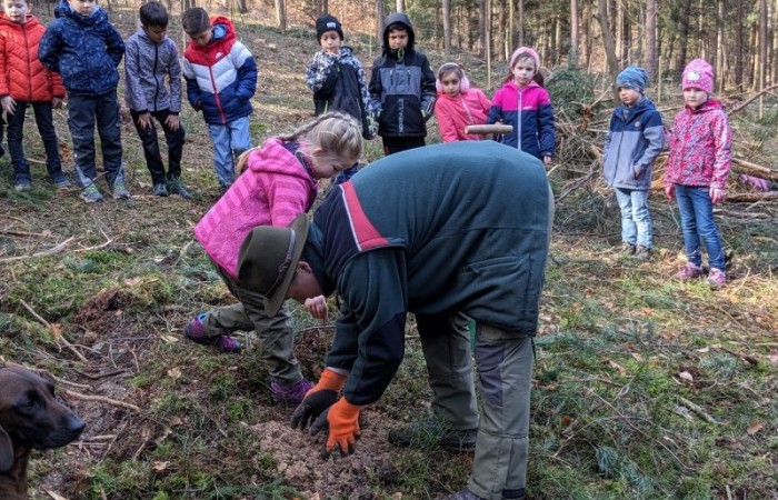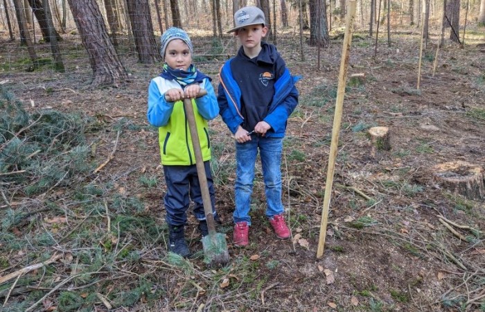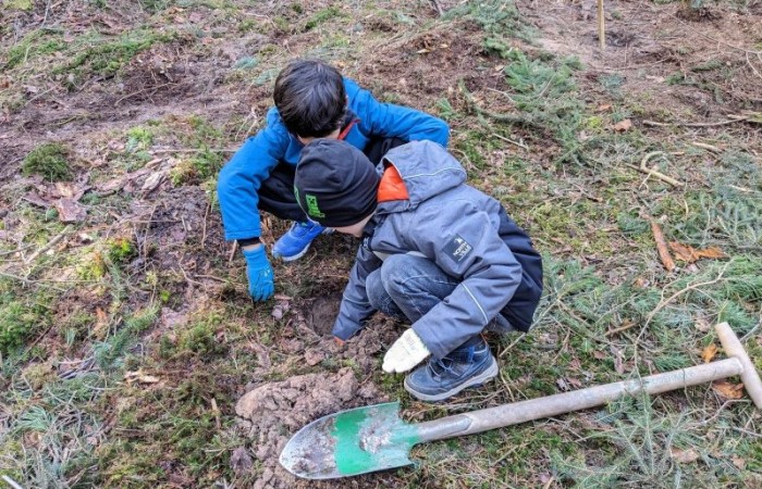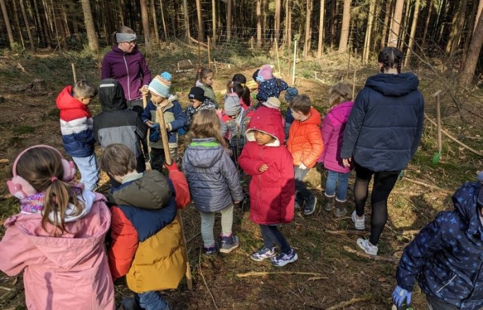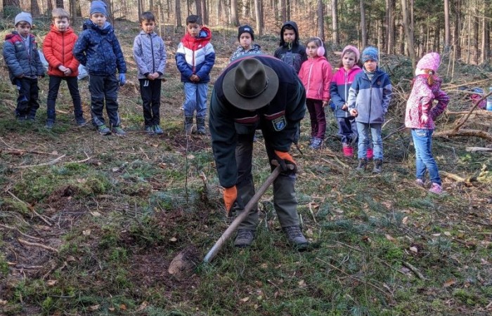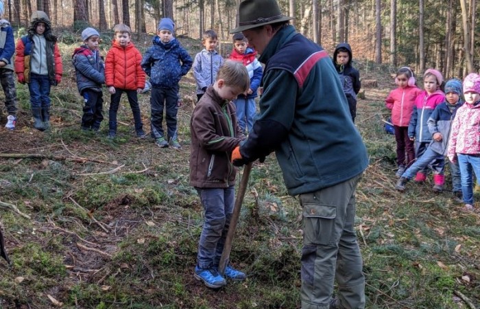 An unserem Waldtag am 20.03. hat uns Herr Käßer viel über Bäume erzählt und wie man sie pflanzt.