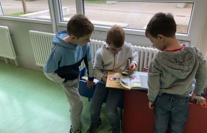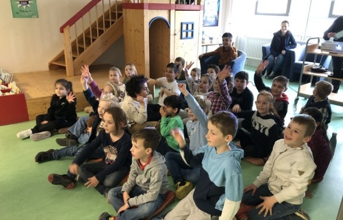 Um bei den Kindern die Liebe zu den Büchern zu wecken und zu vertiefen, feiern wir in jedem Jahr den Welttag des Buches. Und wo kann man diesen Tag am besten begehen? Natürlich in der Bücherei. Nach einer kurzen Einstimmung im Klassenzimmer machten wir, die Klasse 1c, uns auf den Weg zur Kreisbücherei, die für uns extra früher als gewöhnlich ihre Türen öffnete. Umgeben von all den großen, mit Büchern gefüllten Regalen hatte Frau Eckerle uns eine Vorlese-Insel vorbereitet. Als wir alle gemütlich auf den Kissen saßen, präsentierte sie uns die Geschichte vom „Zahnputztag im Zoo“ als Bilderbuch-Kino. Die Geschichte hat genau unseren Geschmack getroffen und wir haben viel über die lustige Geschichte mit den witzigen Bildern gelacht. Im Anschluss stöberten wir durch die vielen Bücherkisten und Regale und staunten, wie vielfältig das Angebot der Bücherei ist. Viele von uns wollten gleich am Nachmittag mit den Eltern noch einmal kommen, um sich in der Bücherei anzumelden.