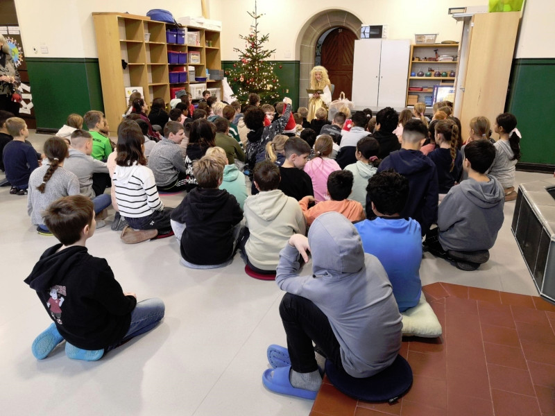 Es erzählte von sich, beantwortete unsere Fragen und las jeder Klassenstufe eine Geschichte vor. Zum Schluss bekam jeder noch ein kleines süßes Geschenk.