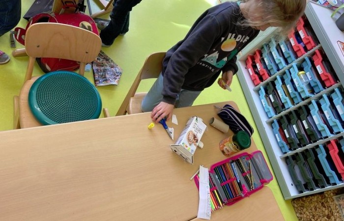 Weiterhin kamen die Kinder dann auf die Idee, aus Müll im Kunstunterricht auch noch etwas zu basteln, seien es Müllmonster, Mülltiere oder andere fantastische Dinge! Hier waren sie auch mit Feuereifer dabei, wie man sieht!!