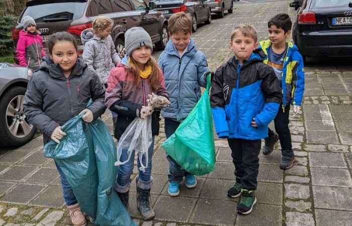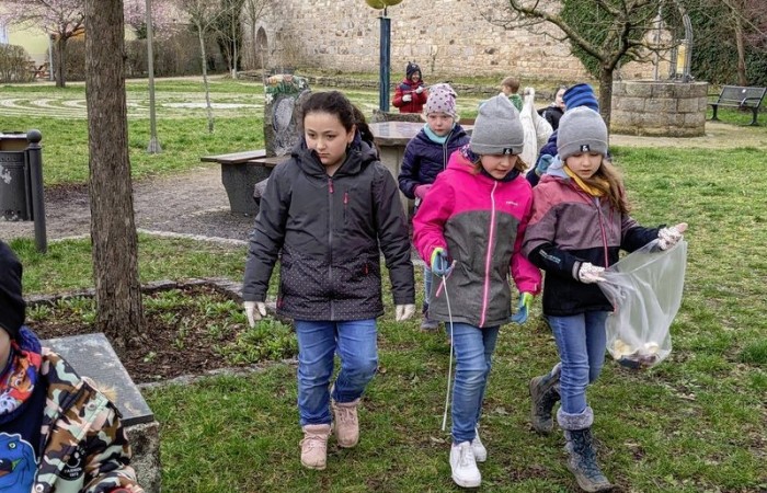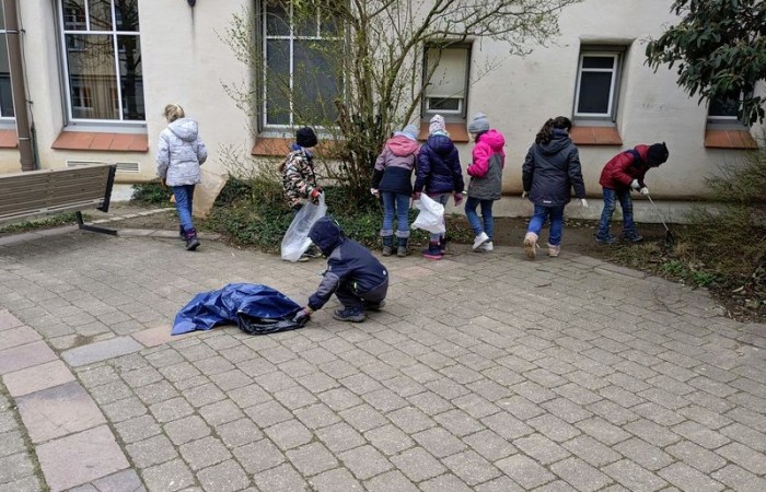 Da traf es sich sehr gut, dass wir am 20.03. bei der jährlichen Aktion „Neustadt wird putzt“ mitmachen konnten. Gemeinsam machten wir uns auf die Suche nach Müll in den beiden Pausenhöfen und in der Bleich. Hier fanden wir neben den üblichen Zigarettenkippen und Bonbonpapieren die erstaunlichsten Dinge wie eine Absperrkette, Glasscherben, … . Die Kinder waren sehr empört darüber, was manche Menschen in unsere schöne Umwelt schmeißen und hätten bestimmt den ganzen Tag weitergesammelt.