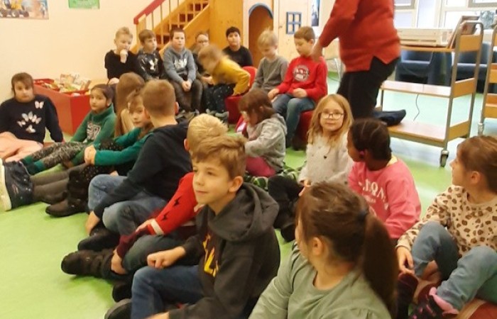 Frau Eckerle las uns am Freitag, den 1. Dezember, passend zum verschneiten Wintertag, das Buch „Die kleine Hexe – Winterzauber mit Abraxas“ vor. Leider war die Zeit zum Schmökern viel zu kurz, deshalb werden wir im Frühjahr nochmal der Bücherei einen Besuch abstatten.