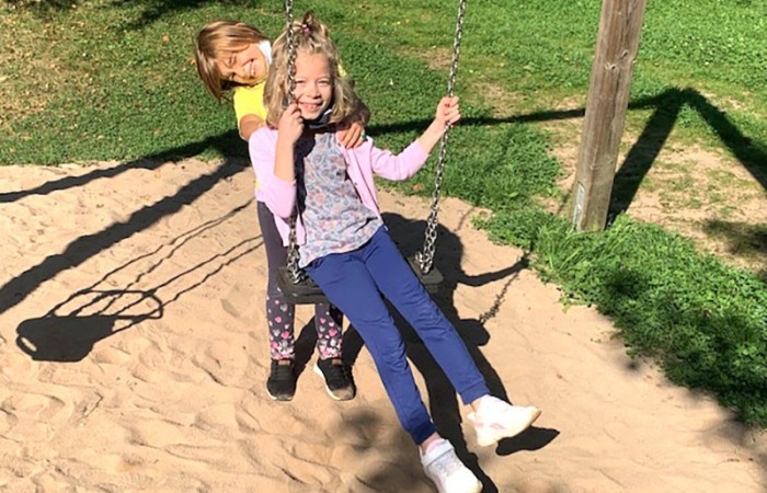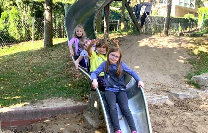 Wir waren am Spielplatz. Wir sind durch den Wald gelaufen. Wir haben auf dem Spielplatz gespielt. Es war ein spaßiger Tag.