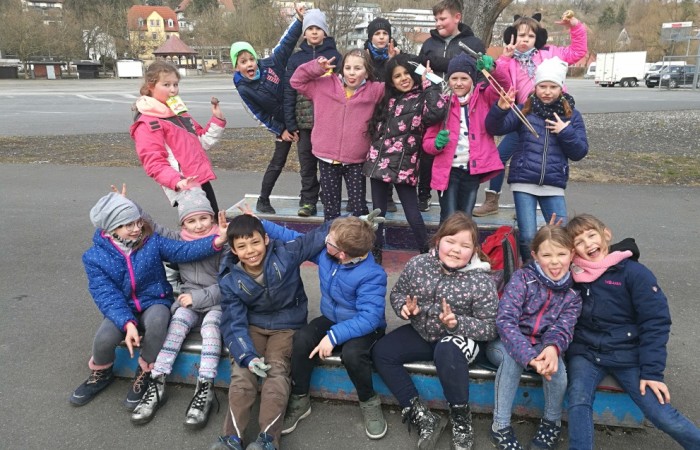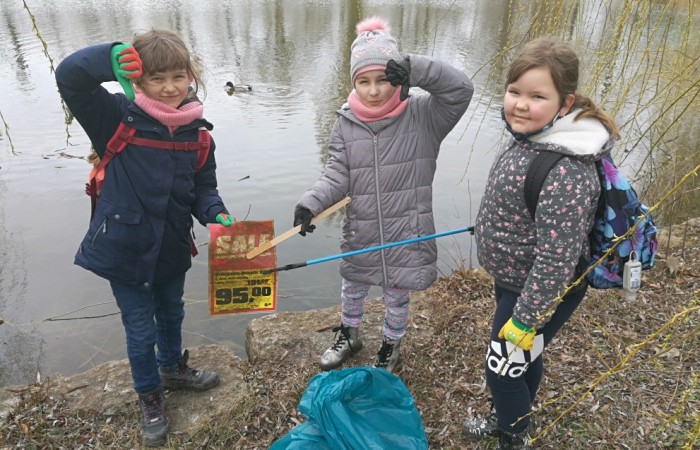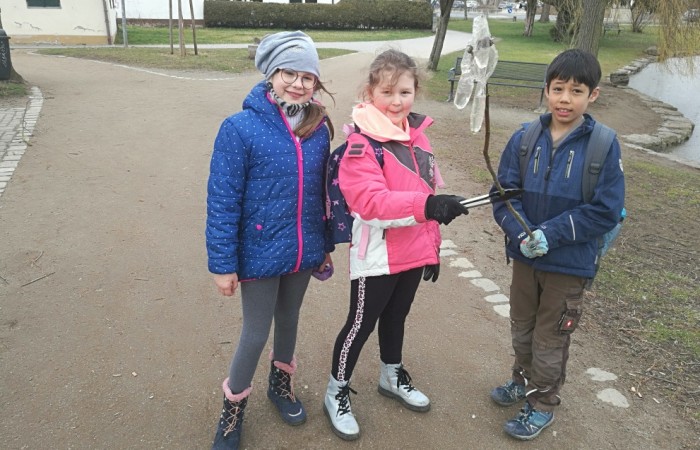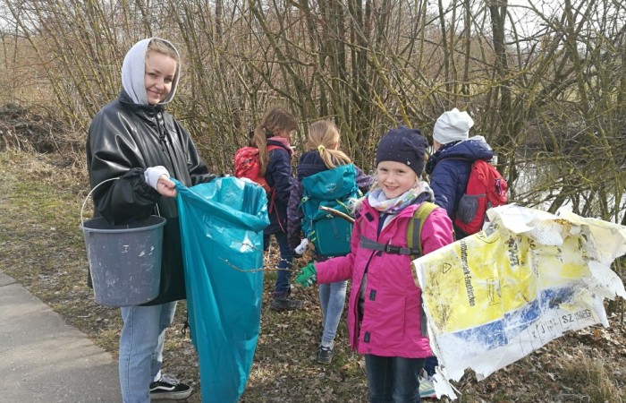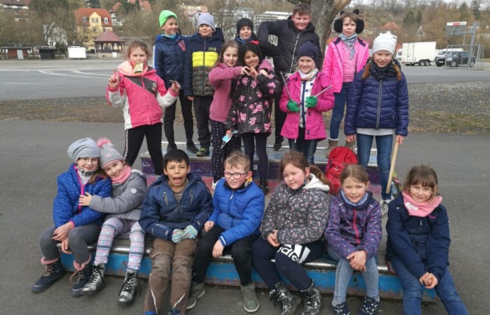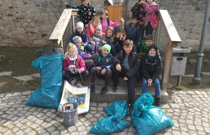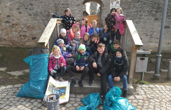 Wir machten uns auf den Weg die Stadt sauberer zu machen und der Umwelt zu helfen. Ausgerüstet mit Handschuhen, Müllbeuteln, Müllzwickern und einem Eimer zogen wir los. Zuerst säuberten wir unseren Pausenhof und mussten dabei feststellen, dass unzählige Zigarettenkippen auf dem Boden und in den Hecken lagen. Danach gingen wir in die Bleiche und fischten sehr viel Plastikmüll aus dem Bleichweiher. Sogar eine Gummimatte für einen Kofferraum war dabei. Auch hier lagen unendlich viele Zigarettenkippen. Wir konnten sie gar nicht alle aufheben. Pause machten wir auf dem dortigen Spielplatz.