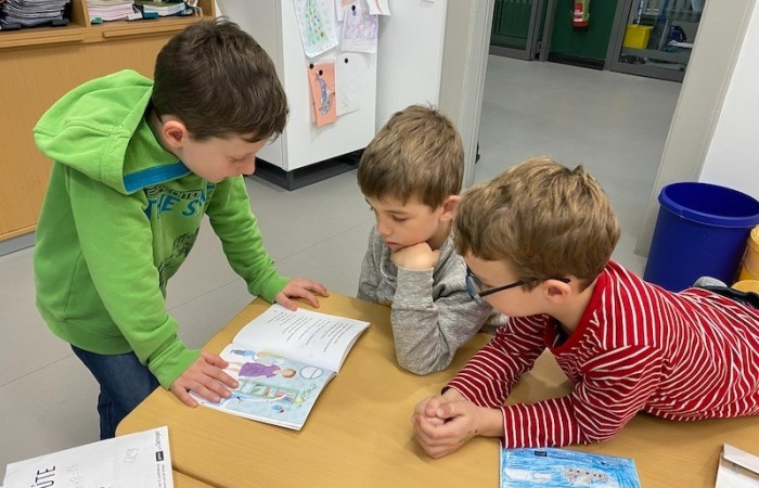 Bis dahin, hat aber die 3a gerne die Aufgabe übernommen, den Neulingen aus dem Buch vorzulesen und mit ihnen gemeinsam auf Kratzbildern weihnachtliche Motive zu zeichnen.