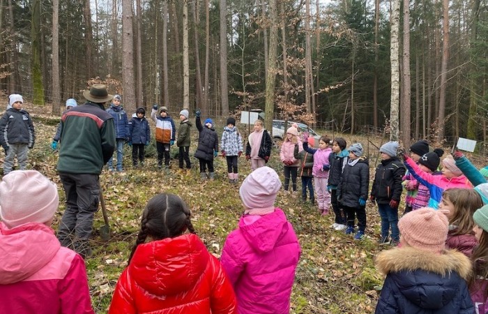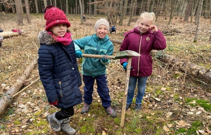 So kann sich der Schulwald auch dieses Jahr über ein paar junge Bäume mehr freuen. Robinien, Schwarzkiefern und Wildbirnen haben die Kinder erfolgreich eingepflanzt, gegossen und letztlich mit einem Pfahl versehen, auf welchem die jeweiligen Namen der Baumpaten sowie die Jahreszahl zu lesen sind. Gerne können die Kinder mitsamt ihren Familien dem Schulwald einen Besuch abstatten und die jungen Bäume bestaunen.