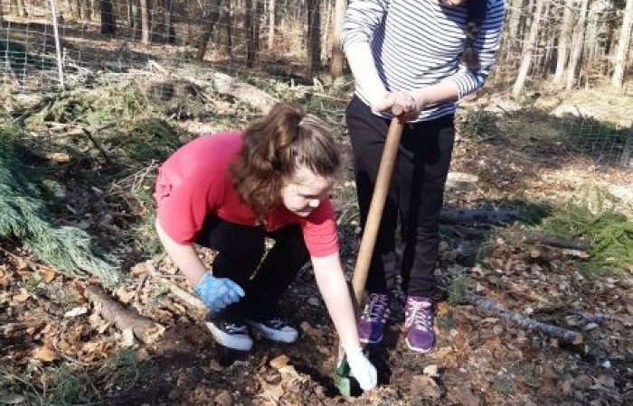 Das Pflanzen der Bäume bot den Kindern praktische Einblicke in die Aufforstung und die Bedeutung des Waldes.
