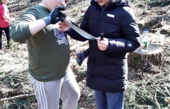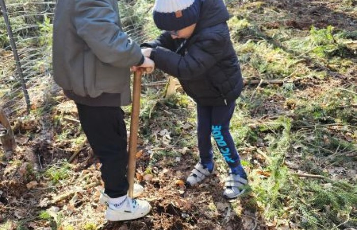 Am 21.03.2025 besuchten die Klassen 3a und 3b gemeinsam den Schulwald, um dort unter Anleitung von Förster Herr Käßer kleine Tannen zu pflanzen.
