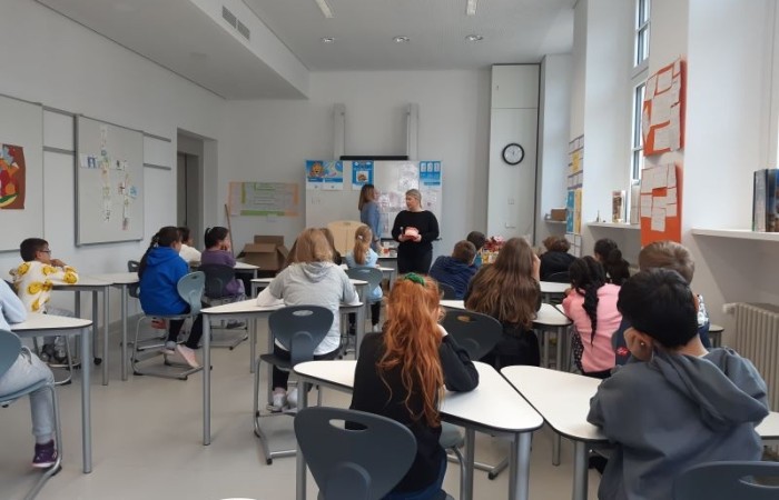 Ein weiteres spannendes Thema war Zucker. Der Zahnarzt erklärte, wie viel Zucker die Weltgesundheitsorganisation (WHO) für Kinder pro Tag empfiehlt – und wie viel Zucker in vielen Lebensmitteln steckt, die die Kinder täglich essen. Um dies anschaulicher zu machen, wurde die Zuckermenge in den Lebensmitteln mit Würfelzucker dargestellt. So konnten die Kinder sehen, wie schnell man mehr Zucker zu sich nimmt, als eigentlich gesund ist.