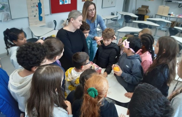 Zum Abschluss des Besuchs gab der Zahnarzt noch wertvolle Tipps für die momentane Erkältungszeit. Besonders wichtig ist für die Kinder, dass sie genug Vitamin D bekommen, welches hauptsächlich durch Sonnenlicht gebildet wird. Da die Sonne in den Wintermonaten oft weniger scheint, sollten die Kinder zusätzlich auf Lebensmittel achten, die Vitamin D enthalten. Zudem sprach der Zahnarzt darüber, wie wichtig Vitamin C für das Immunsystem ist, um gesund durch die kalte Jahreszeit zu kommen. Die Kinder lernten, in welchen Lebensmitteln Vitamin C enthalten ist, wie zum Beispiel in Zitrusfrüchten, Paprika und anderen frischen Gemüsesorten.