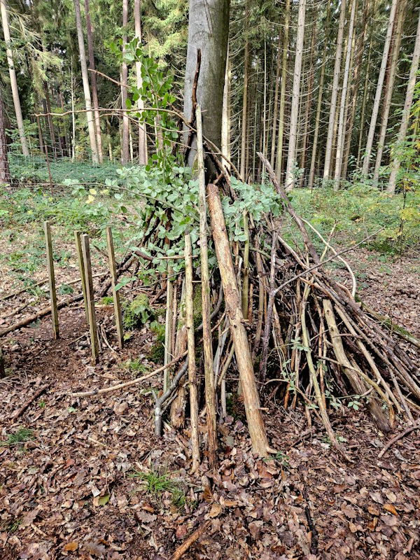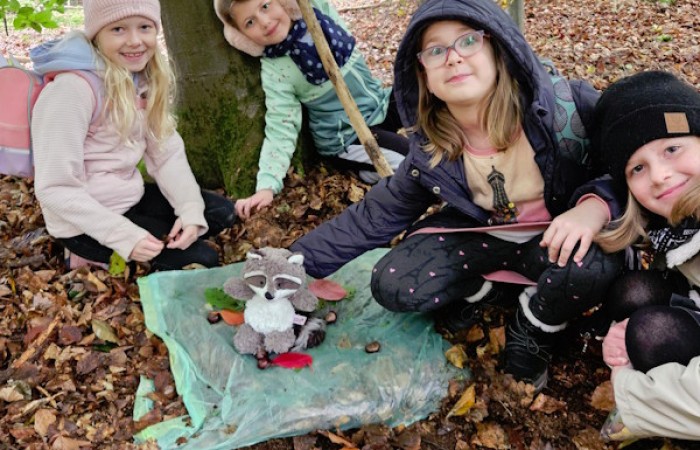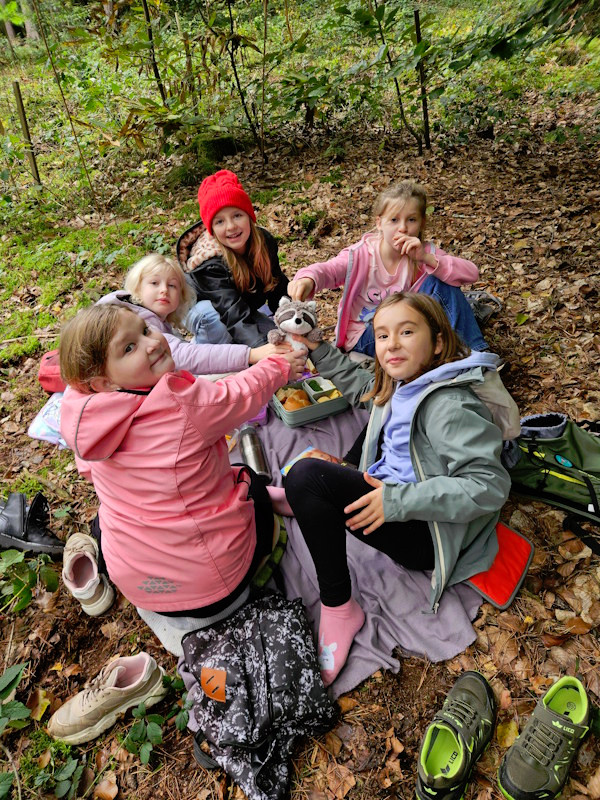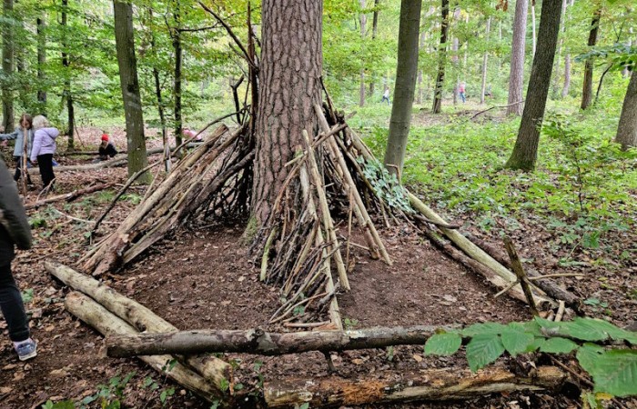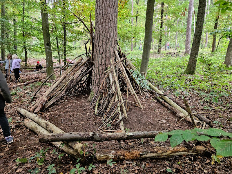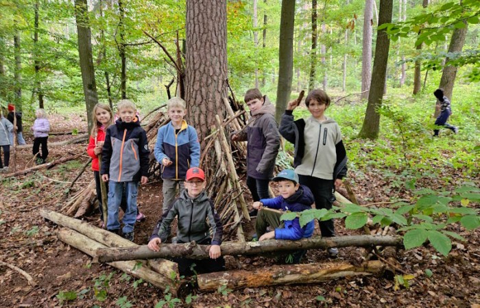 Im Wald angekommen, stärkten wir uns zuerst bei einer gemütlichen Pause. Danach ging es ans Lagerbauen – mit viel Kreativität, Teamgeist und Spaß! Es war toll zu sehen, wie alle Kinder zusammengeholfen haben. Die Ergebnisse konnten sich wirklich sehen lassen – kleine Waldlager aus Ästen, Blättern und Moos entstanden überall. Auch Willi hat in jedem Lager seinen Platz bekommen. Die Zeit verging wie im Flug, und am liebsten wären viele Kinder noch länger geblieben. Auf dem Rückweg waren die Beine zwar etwas müde, aber das Gefühl, gemeinsam etwas erlebt zu haben, war einfach wunderbar.
