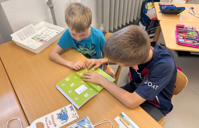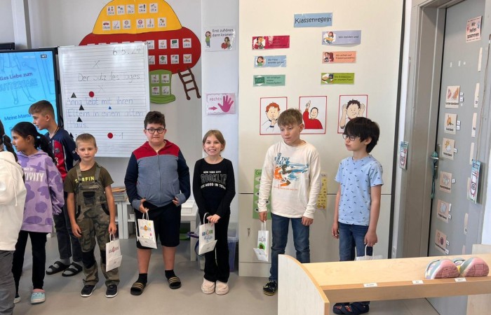 Die Drittklässler der Klasse 3c haben den Erstklässlern der Partnerklasse 1c Lesetüten überreicht.