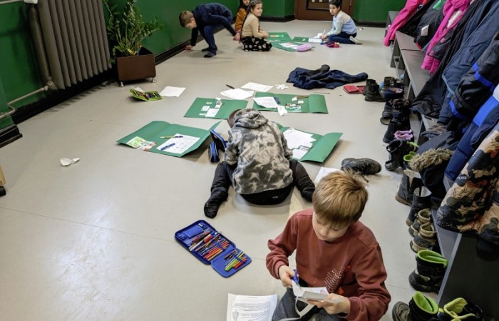 Unsere Informationen hielten wir in unseren kreativ gestalten Lapbooks fest, die wir an flexiblen Arbeitsplätzen erstellen durften. So setzten sich viele Kinder auf dem Boden oder den Teppich, in unsere Lesewiese oder auch an kleinere Tische, um dort in Ruhe zu arbeiten. Unsere Lapbooks möchten wir in der Schule ausstellen, damit sich jeder über das wichtige Thema „Naturschutz und Schutz unserer Wälder“ informieren kann.
