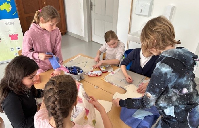 Ziel des Projekts ist es, die Kinder für dieses wichtige Thema zu sensibilisieren und zum selbstständigen und kritischen Denken anzuregen. Die „mobile Textilfabrik“ gab den Schülerinnen und Schüler auf spielerische Art und Weise gezielte Impulse, um über den eigenen Tellerrand hinauszublicken und über die Schere zwischen Arm und Reich zu reflektieren. Nach einer kurzen Einführung zum Thema Baumwolle, in welcher die Kinder ihre Etiketten an den Kleidungsstücken nach der Stoffzusammensetzung und der Herkunft untersuchten, wurden die Kinder dann selbst zu fleißigen Arbeiterinnen und Arbeitern am Fließband in einer fiktiven Fabriksituation. Aus einem Stück Stoff stellten die Schülerinnen und Schüler durch Aufzeichnen, Schneiden, Stecken, Nähen und Bemalen nach und nach ein T-Shirt her. Nach der Gruppenarbeit (“Fließbandarbeit“) wurden die Kinder mit Gummibärchen bezahlt - leider nur sehr ungerecht, je nachdem welches Land ihnen zu Beginn per Los zugeteilt wurde. Das gab Anlass zur Diskussion. Es fielen Sätze, wie: „Total unfair!“ oder „Ich habe genauso viel gearbeitet und bekomme nur ein halbes Gummibärchen!“ Daraufhin erklärten die beiden Mitarbeiter des Politmobils den Kindern, dass es genauso auf der Welt sei. Ein Textilarbeiter aus Bangladesch bekommt für die gleiche Arbeit leider viel weniger. Da die Kinder nun die Ungerechtigkeit am eigenen Leib erlebten, überlegten sie sich daraufhin viele Möglichkeiten, wie sie selbst dazu beitragen können, unfaire Arbeitsbedingungen nicht zu unterstützen. Ideen der Kinder waren dabei, Spenden zu sammeln und Secondhand-Kleidung zu kaufen. Am Ende des Projekts wurde den Kindern gezeigt auf welche Siegel (zum Beispiel: Fairtrade oder Grüner Knopf) sie achten sollten, um beim Kauf von Kleidung faire Arbeitsbedingungen zu berücksichtigen. Sicherlich wird nun das ein oder andere Kind auch daheim nachforschen, ob es diese Siegel in Kleidungsstücken finden kann.