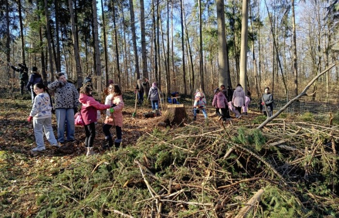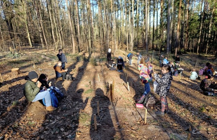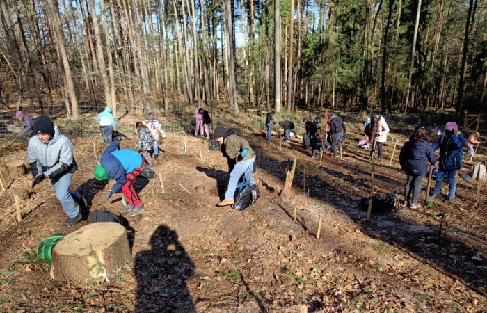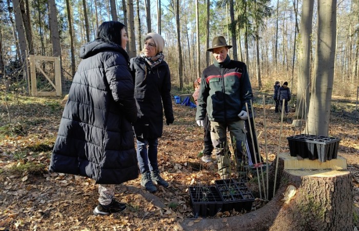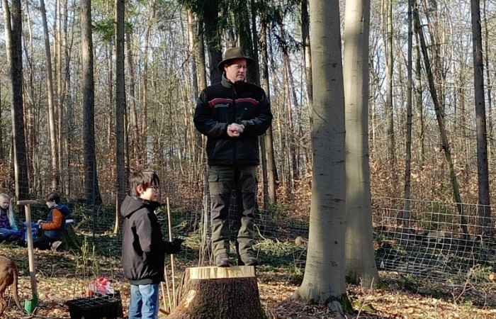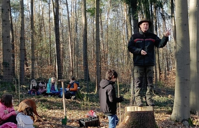 Wir pflanzten gemeinsam mit dem Förster  Baumarten, die gut mit einem wärmeren und trockeneren Klima zurechtkommen.