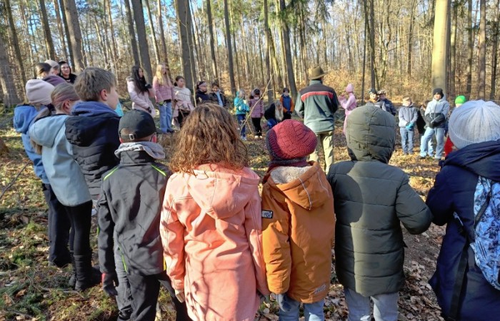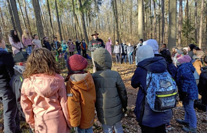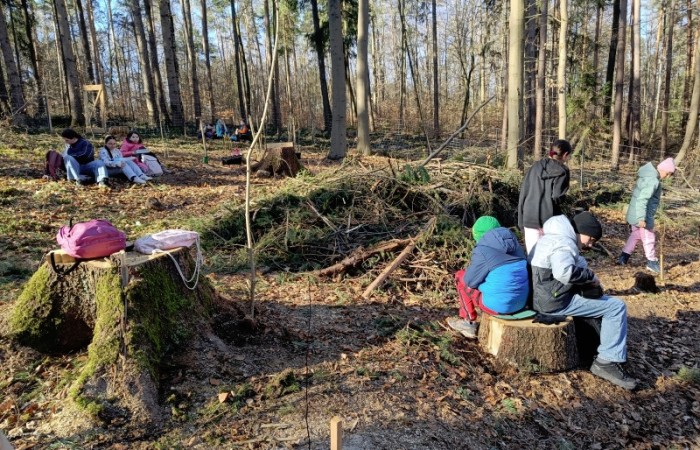 Am 7.4.25 machten wir uns bei strahlendem Sonnenschein, aber eiskalten Temperaturen auf in den Schulwald, um einen Beitrag zum Schutz und zur Erhaltung des Waldes zu leisten.