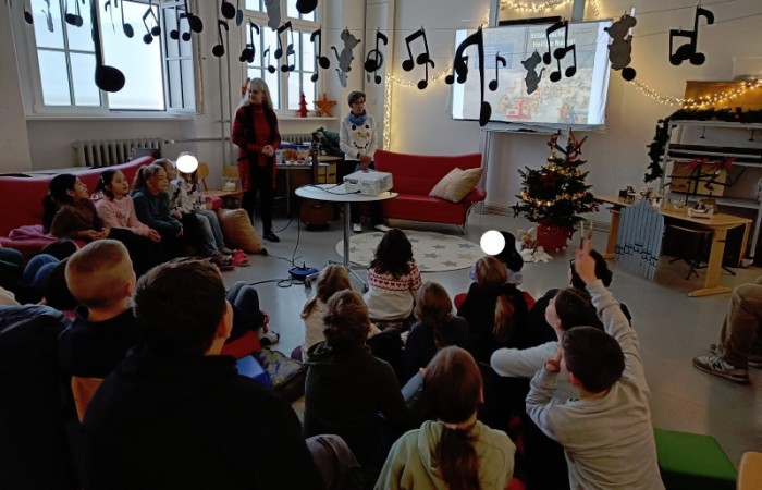 Frau Röder betreute alle 14 Klassen liebevoll und fachkundig zusammen mit der jeweiligen Klassenlehrkraft. Die Kinder genossen die weihnachtliche Stimmung und Ruhe sehr. Manch ein Schüler/Schülerin sagte: Ohhhh, das war jetzt schön, so entspannend. … Fast wie Kino. …. Können wir noch bleiben. … Auch wurde darüber geredet, dass dieses Buch einen wahren Kern besitzt.