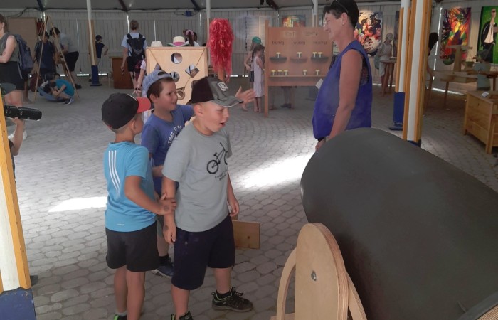 Im schiefen Haus und auf der Drehscheibe spürten wir unseren Gleichgewichts- und Orientierungssinn.