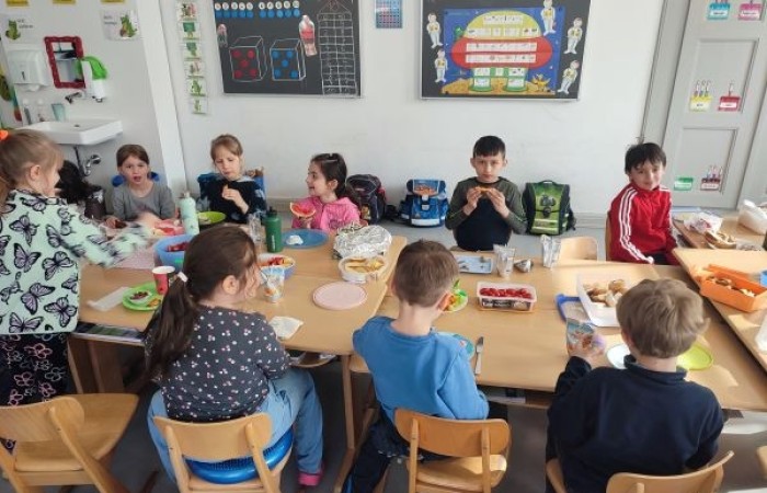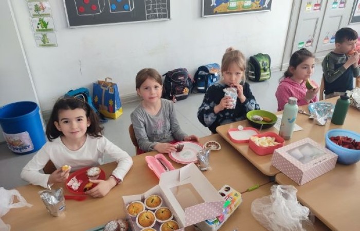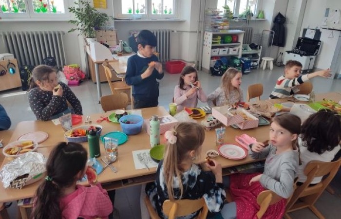 Am letzten Schultag vor den Osterferien brachten die Kinder der Klasse 1b zahlreiche Leckereien für unser gemeinsames Osterfrühstück mit.