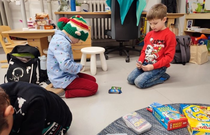 Endlich startete unsere gemeinsame Weihnachtsfeier, zu der wir uns alle besonders herausgeputzt hatten. Wir vertieften uns in die vielen mitgebrachten Spiele und freuten uns über die Leckereien, die wir uns in der Frühstückspause schmecken ließen.