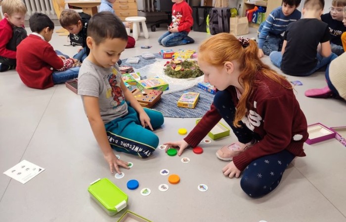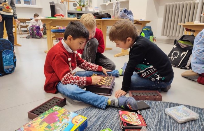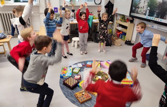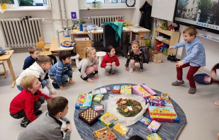 Großen Spaß hatten wir auch beim Spiel „Zwerg-Riese-Mensch“. Viel zu schnell war der Schultag vergangen. Doch wir starteten glücklich und zufrieden in unsere ersten Weihnachtsferien!