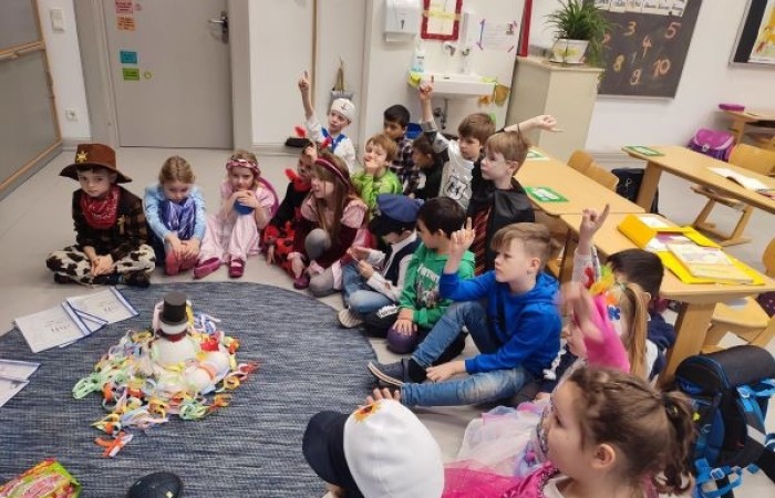 So wurde nicht nur in der Klasse 1b in der letzten Stunde eine kleine Faschingsfeier mit Spielen, Leckereien und einer Polonäse veranstaltet.
