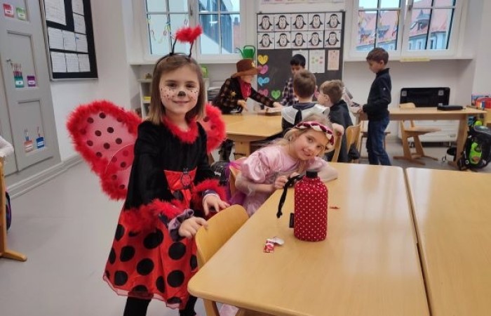 Viele Kinder kamen verkleidet in die Schule. Neben Spiderman, Catboy, Ninja, Cowboy, Sheriff, Prinzessin, Marienkäfer, Einhorn und Co. gab es auch einige Lehrkräfte, die sich von den lustigen Stimmung haben anstecken lassen.