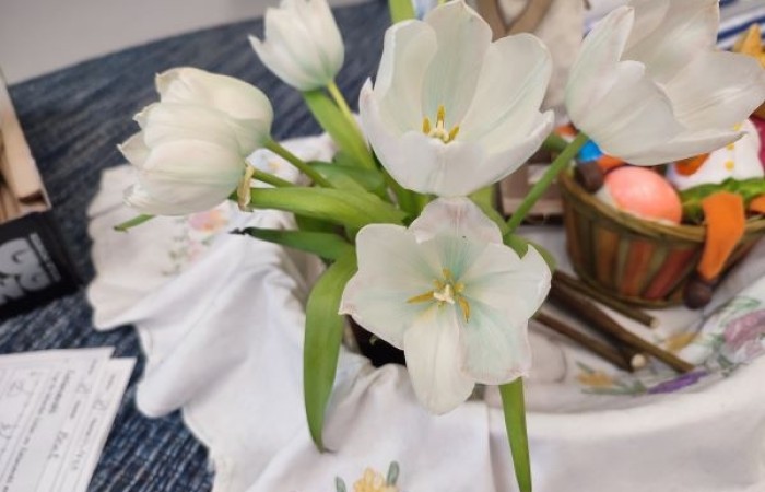 Um unsere Kreismitte zu schmücken, hatte ein Schüler weiße Tulpen mitgebracht. Diese wurden direkt verwendet, um ein Experiment zu starten.