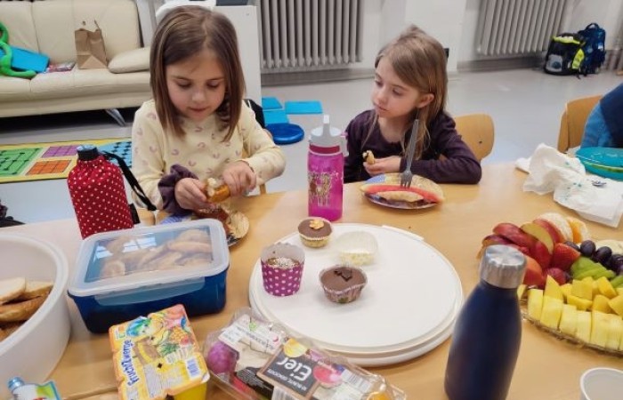 Herzlichen Dank an die fleißigen Bienchen, die uns mit all den Köstlichkeiten versorgt haben und auch an die beiden Mamis, die beim Auf- und Abbau dieser langen Tafel mitgeholfen haben!