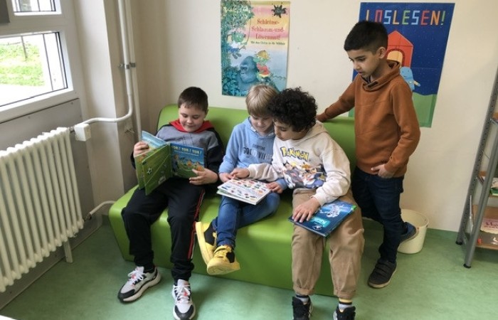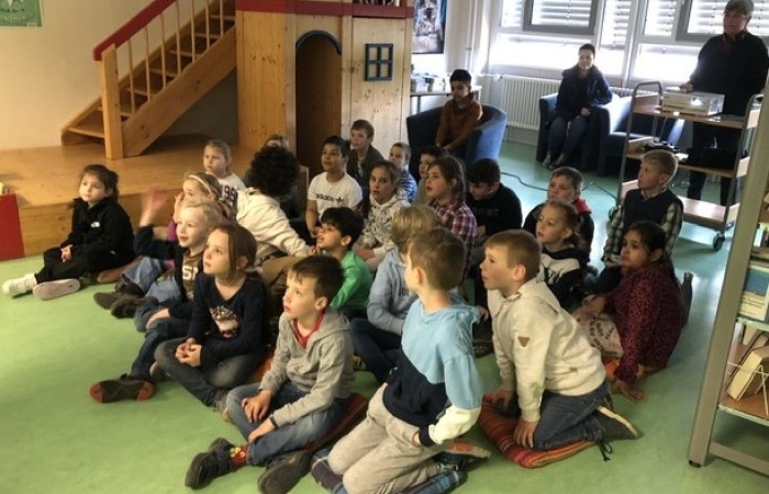 Um bei den Kindern die Liebe zu den Büchern zu wecken und zu vertiefen, feiern wir in jedem Jahr den Welttag des Buches. Und wo kann man diesen Tag am besten begehen? Natürlich in der Bücherei. Nach einer kurzen Einstimmung im Klassenzimmer machten wir, die Klasse 1c, uns auf den Weg zur Kreisbücherei, die für uns extra früher als gewöhnlich ihre Türen öffnete. Umgeben von all den großen, mit Büchern gefüllten Regalen hatte Frau Eckerle uns eine Vorlese-Insel vorbereitet. Als wir alle gemütlich auf den Kissen saßen, präsentierte sie uns die Geschichte vom „Zahnputztag im Zoo“ als Bilderbuch-Kino. Die Geschichte hat genau unseren Geschmack getroffen und wir haben viel über die lustige Geschichte mit den witzigen Bildern gelacht. Im Anschluss stöberten wir durch die vielen Bücherkisten und Regale und staunten, wie vielfältig das Angebot der Bücherei ist. Viele von uns wollten gleich am Nachmittag mit den Eltern noch einmal kommen, um sich in der Bücherei anzumelden.