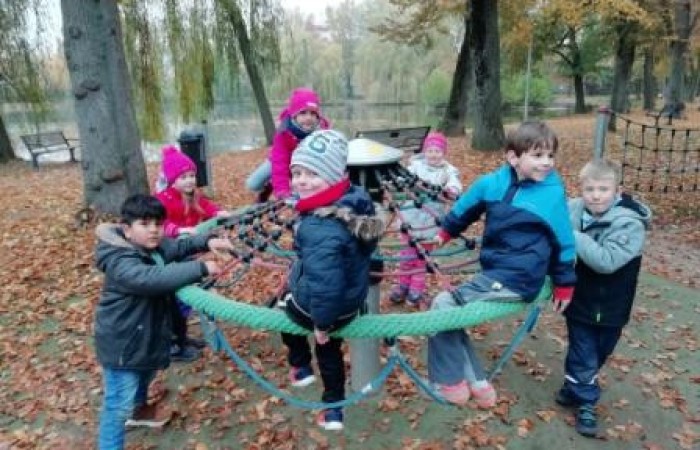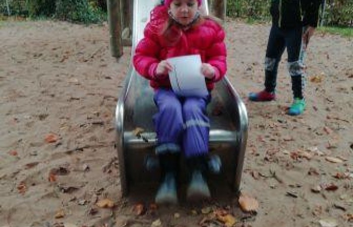 Auf der „Lese-Rutsche“ haben die Kinder das Zusammenlesen zweier Laute zu einer Silbe geübt. Im Sand konnten mit Buchstaben-Förmchen Silben geformt werden und am Zaun wurden die gelesenen Silben abgeklatscht. Außerdem haben wir Silben beim Laufen verändert oder am Karussell gedreht.