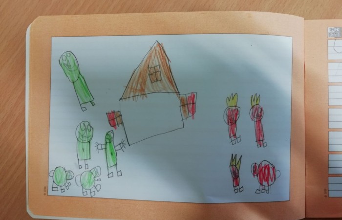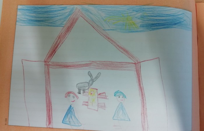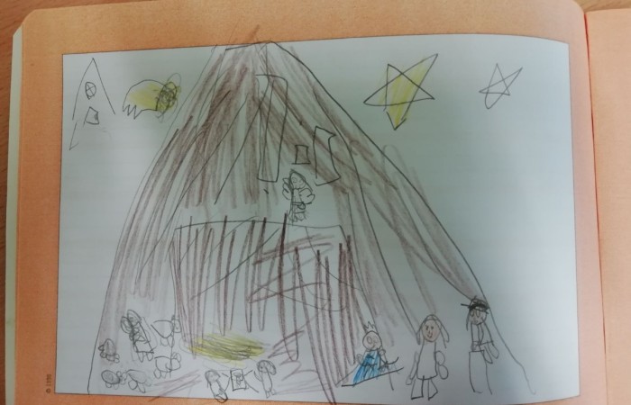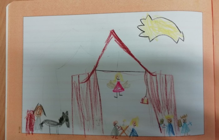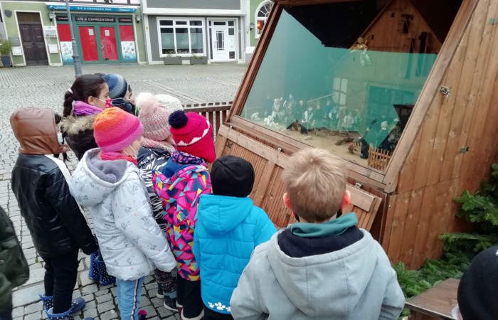 Um allen Kindern die Bedeutung des Weihnachtsfestes näher zu bringen, haben wir die Weihnachtskrippe auf dem Marktplatz betrachtet und hinterher in unserem Geschichtenheft gemalt und dazu geschrieben.