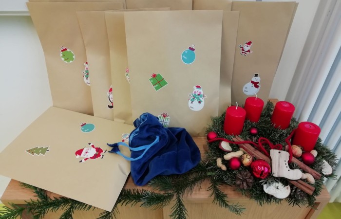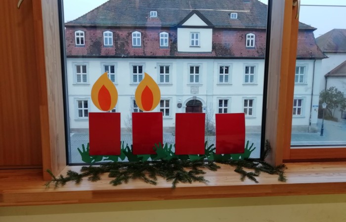 In der Klasse 1d ziert ein riesiger Papieradventskranz unser Klassenzimmerfenster und ein echter Adventskranz unseren Sitzkreis. Jeden Morgen zünden die Kinder in der Adventszeit die Kerzen an, wenn es draußen noch ein bisschen dunkel ist. Im Schein der Kerzen wird die Adventsgeschichte vorgelesen und ein Kind gelost, das das Adventspäckchen mit nach Hause nehmen darf.