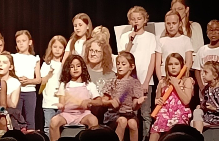 Die Chor-AG unserer Schule, unter der Leitung von Frau Kreß, begann sehr ausdrucksstark mit dem Lied "Miteinander". Unsere Orff-AG, unter der Leitung von Frau Berg, kam mit den Boomwhackers dazu und gemeinsam wurde das Lied "We Are the World" äußerst gefühlvoll gesungen und begleitet. Besonders hervorzuheben ist, dass sich auch Eltern in die Orff-AG einbrachten und Schüler, Eltern und Lehrer gemeinsam musizierten. So wurde das Konzert von unseren AGs sehr stimmungsvoll und professionell eröffnet.