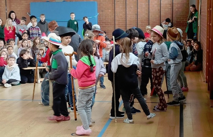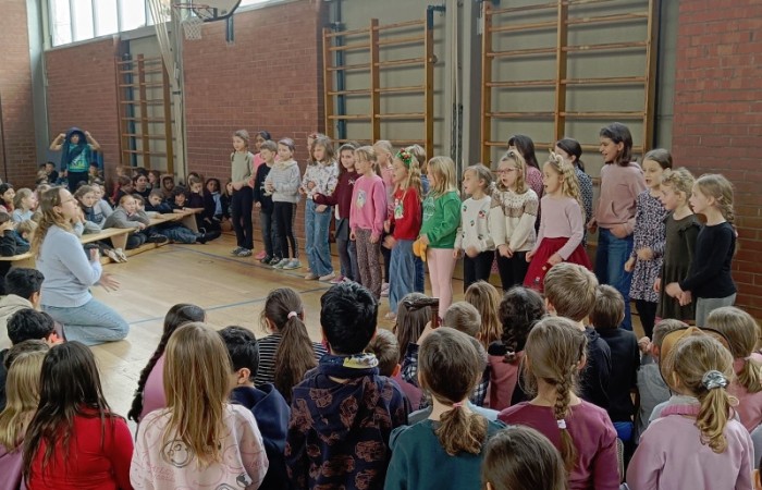 Am letzten Schultag vor den Weihnachtsferien fand in der Turnhalle die gemeinsame Weihnachtsfeier der ganzen Schule statt.