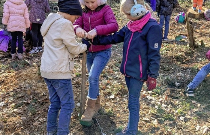 Endlich durften wir wieder in den Wald und dem Förster beim Bäumepflanzen helfen.