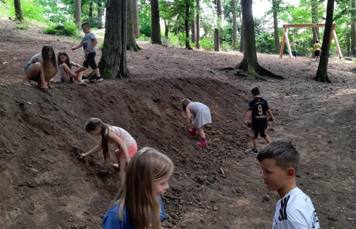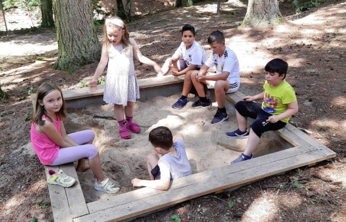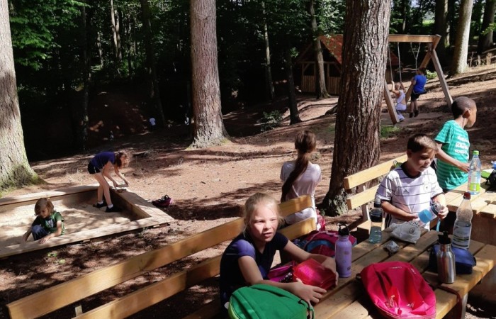 Nachdem die Zimmer im 3. Stock bezogen waren und der Kampf mit der Bettwäsche gewonnen war, besuchten wir erstmal den wunderschönen Waldspielplatz.
