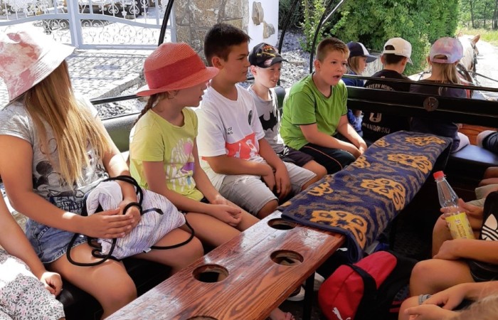 Am nächsten Tag ging es auf den Haflingerhof Oeder in Frankfurt. Dort lernten wir viel über Pferde, durften die Vierbeiner füttern und beim Striegeln und Hufauskratzen helfen. In der Kutsche ging es wieder im Schritt, Trab und Galopp über Feldwege, Straßen und Wiesen zurück zu unserer Unterkunft.