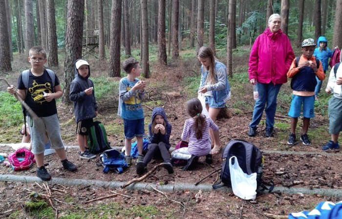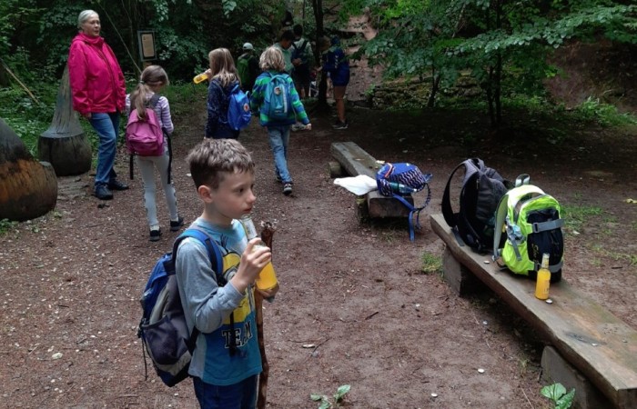 Nach der zweiten Nacht und einem ordentlichen Frühstück machten wir uns mit dem Bus auf den Weg nach Münchsteinach. Ab da wanderten wir - leider bei regnerischem Wetter - im Schnelltempo den Oasenweg der Sinne.