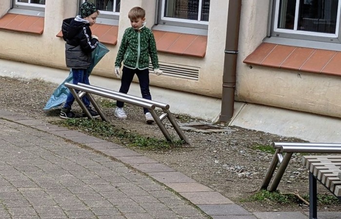 Da traf es sich sehr gut, dass wir am 20.03. bei der jährlichen Aktion „Neustadt wird putzt“ mitmachen konnten. Gemeinsam machten wir uns auf die Suche nach Müll in den beiden Pausenhöfen und in der Bleich. Hier fanden wir neben den üblichen Zigarettenkippen und Bonbonpapieren die erstaunlichsten Dinge wie eine Absperrkette, Glasscherben, … . Die Kinder waren sehr empört darüber, was manche Menschen in unsere schöne Umwelt schmeißen und hätten bestimmt den ganzen Tag weitergesammelt.