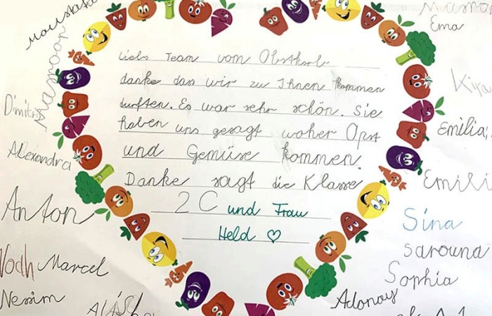 Ein herzliches Dankeschön für die interessante und besondere Unterrichtsstunde (und für die leckeren Bananen) geht an das Team vom Obstkorb!