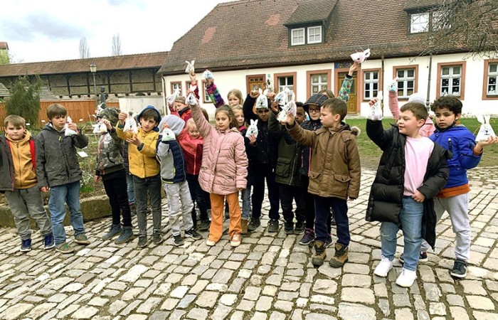 Zu unserer großen Freude hatte der Osterhase im Schlosshof sogar noch Ostertütchen versteckt. In Windeseile waren alle Tütchen gefunden und ausgepackt. Ein richtig schöner Schultag zum Einstieg in die Osterferien.