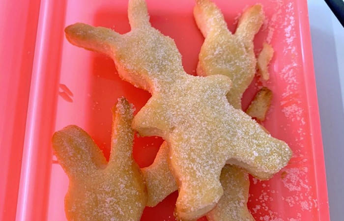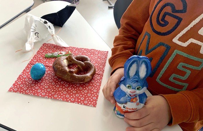 Osterhäschen, Osterbrot, Eier, Schokohasen aber auch Karotten, Paprika und Erdbeeren hatten wir auf unseren gedeckten Tischen. Wir ließen es uns so richtig gut gehen!