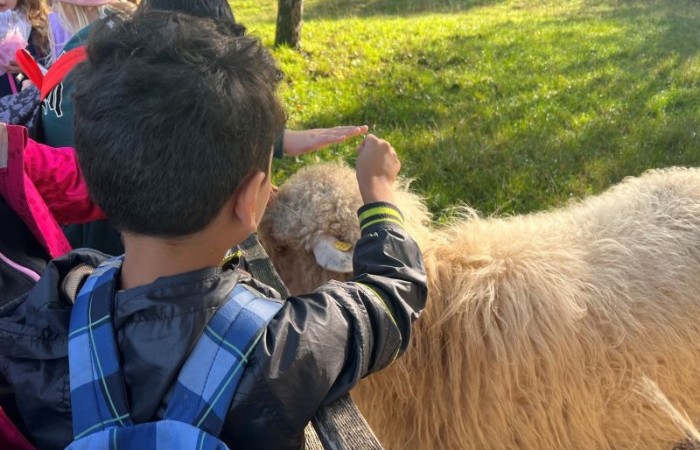 Besonders aufregend war es, als wir echte Schafe streicheln und mehr über ihre Haltung und Pflege lernen durften. Anschließend haben wir den gesamten Prozess der Wollherstellung kennengelernt: von der Schnur über das Waschen, Kämmen und Spinnen bis hin zur fertigen Wolle. Es war faszinierend zu sehen, wie viel Arbeit in jedem einzelnen Schritt steckt.