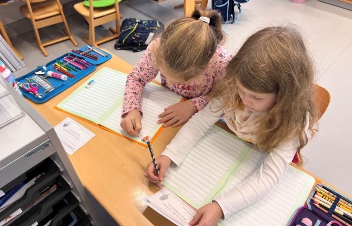 Nach den Ferien gehen wir einen Schritt weiter. Dann wird die Klasse 2c das Gelernte anwenden, indem sie mit einer Wörterliste und dem Wörterbuch arbeiten. Diese Übungen bereiten die Kinder optimal auf den späteren Schulalltag vor, da sie lernen, eigenständig Wörter zu suchen. So entwickeln sie nicht nur ein besseres Verständnis für die Struktur der Sprache, sondern auch Fähigkeiten im Bereich de Recherche und des selbstständigen Lernens.