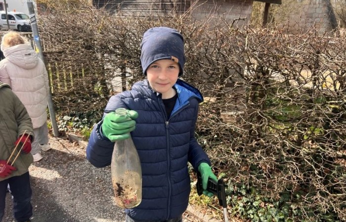 Ausgestattet mit Handschuhen und Müllzwickern sammelten die Kinder eifrig Abfälle ein, die leider in der Natur entsorgt wurden. Besonders häufig fanden sie Glasflaschen, Überreste von Silvesterraketen und zahlreiche Zigarettenstummel.