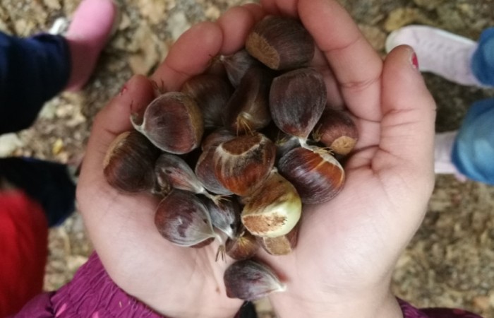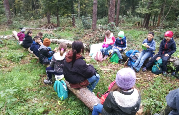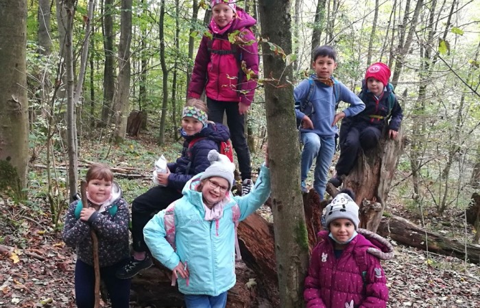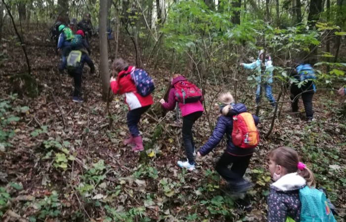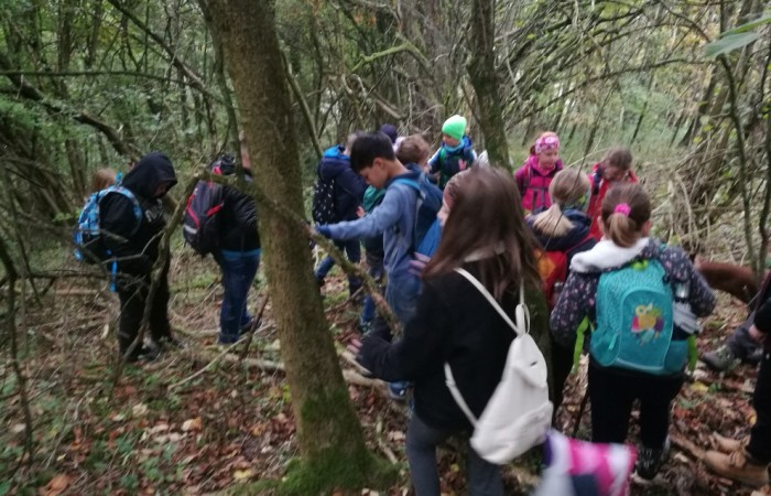 Wir trafen uns am Wasserhaus im Stadtpark und wanderten dann von dort durch den Urwald im Stadtwald. Wir sahen Bäume mit Verwachsungen, Eichhörnchen, Mäuse, eine Spechthöhle und leider auch einigen Müll. Der arme Specht hat sich eine dreistöckige Wohnung gebaut, mit Aussicht auf viel Müll. Auch abgestorbene Bäume dürfen stehen bleiben. Sie sind Wohnungen für z. B. Insekten. Rast machten wir im Schulwald. Beim Öffnen der Esskastanien merkten wir, wie stachelig ihre Hülle ist. Es war ein anstrengender, aber sehr interessanter Ausflug.