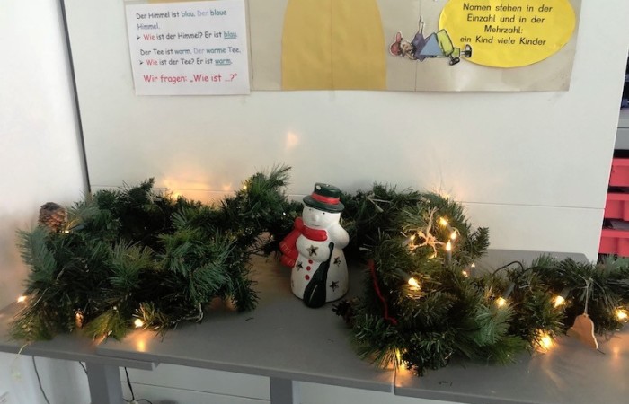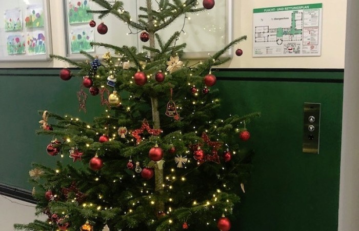 Last Christmas läuft schon fröhlich auf jedem Radiosender und auch in der Schule kehrt Weihnachtsstimmung ein. Die kleinen Helferlein der 3a haben dabei kräftig mitgewirkt! Hoch motiviert wurde der Tannenbaum im ersten Obergeschoss reichlich mit allerlei Dekor behangen und geschmückt. Und das Ergebnis kann sich sehen lassen! Jetzt kann der Dezember endlich kommen und wir warten alle gespannt, welche Geschenke uns wohl dieses Jahr erwarten.