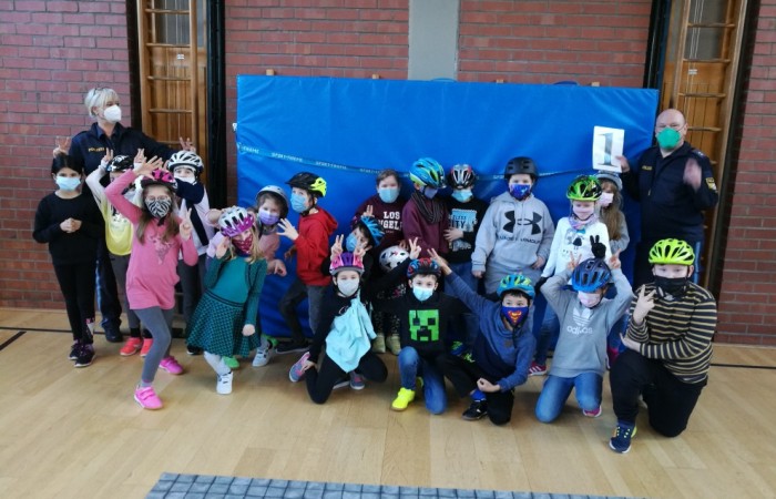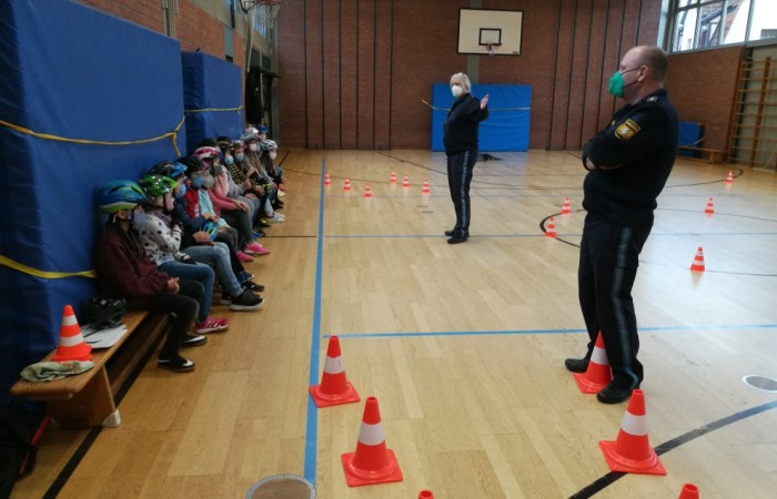 Die Polizisten Frau Lang und Herr Witt hatten für uns einen Parcours aufgebaut. Zuerst übten wir auf der richtigen Straßenseite fahren, Slalomfahren, über eine Wippe fahren, im Kreis fahren und das gezielte Bremsen. Dann wurde es schwieriger. Während des Slaloms mussten wir immer, wie beim Abbiegen auf der Straße, eine Hand herausstrecken. Einmal war es die rechte, dann die linke Hand. Zum Schluss fuhren wir den Parcours auf Zeit. Jetzt weiß jeder, was er bis zum Fahrradführerschein in der vierten Klasse noch besonders üben muss.